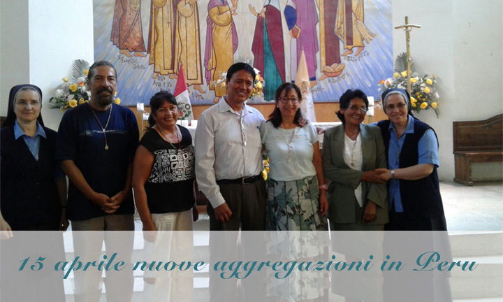 L’anno 2018 si è rivelato un anno fruttuoso per il ramo laicale della famiglia Religiosa non solo in Perù, che da un po’ di anni ci sta abituando a questa crescita, ma anche dall’Italia. Infatti il Signore ha benedetto la nostra Associazione con cinque nuovi membri dal Perù che hanno fatto la loro aggregazione il 15 aprile nella Parrocchia di San Corrado a Lima e con una nuova sorella dall’Italia, che ha fatto la sua aggregazione nella sua Parrocchia di Noceto (PR), nella festa del Cuore Immacolato di Maria il 9 giugno scorso. Tutte e due le celebrazioni sono state occasione di gioia sia per l’associazione sia per noi suore.