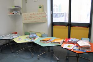 In pochi minuti le maestre hanno allestito con un papà di due bimbi che corrono felici nei miei corridoi, il salone come fanno quando ci sono le riunioni degli adulti